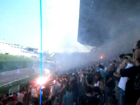 Στις 18:25 πέρασαν από την καταπακτή των αποδυτηρίων στον αγωνιστικό χώρο παίκτες και τεχνική ηγεσία και επικράτησε πανδαιμόνιο. Δεκάδες πυρσοί και βεγγαλικά άναψαν ενώ η Τούμπα δονήθηκε από συνθήματα. Οι παίκτες του ΠΑΟΚ ανταπέδωσαν τα χειροκροτήματα ενώ ο Μπόλονι έδειχνε ενθουσιασμένος με την εικόνα αυτή και την υποδοχή που έκανε στην ομάδα ο κόσμος. Εμφανώς ευτυχισμένοι οι πολλοί πιτσιρικάδες παίκτες από τα τμήματα υποδομής που θα κάνουν προπονήσεις με την πρώτη ομάδα και δείχνουν να απολαμβάνουν αυτές τις ανεπανάληπτες στιγμές. Κάποια από τα βεγγαλικά έπεσαν μέσα στον αγωνιστικό χώρο και έτσι άνδρες της ιδιωτικής ασφάλειας είχαν αρκετό τρέξιμο για να τα σβήσουν. Η είσοδος της ομάδας στον αγωνιστικό χώρο άργησε καθώς ο Μπόλονι είχε μια πρώτη ομιλία μέσα στα αποδυτήρια με τους ποδοσφαιριστές του για τις πρώτες συστάσεις.